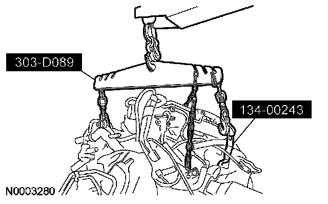7. NOTE: A third lift chain should be used to allow for level lifting of the engine.