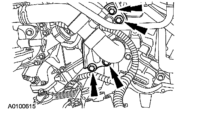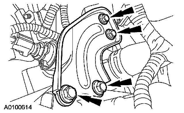 10. Position the RH exhaust manifold heat shield and install the 3 bolts.