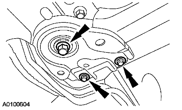 14. Install the 3 rear transaxle insulator bracket bolts.
