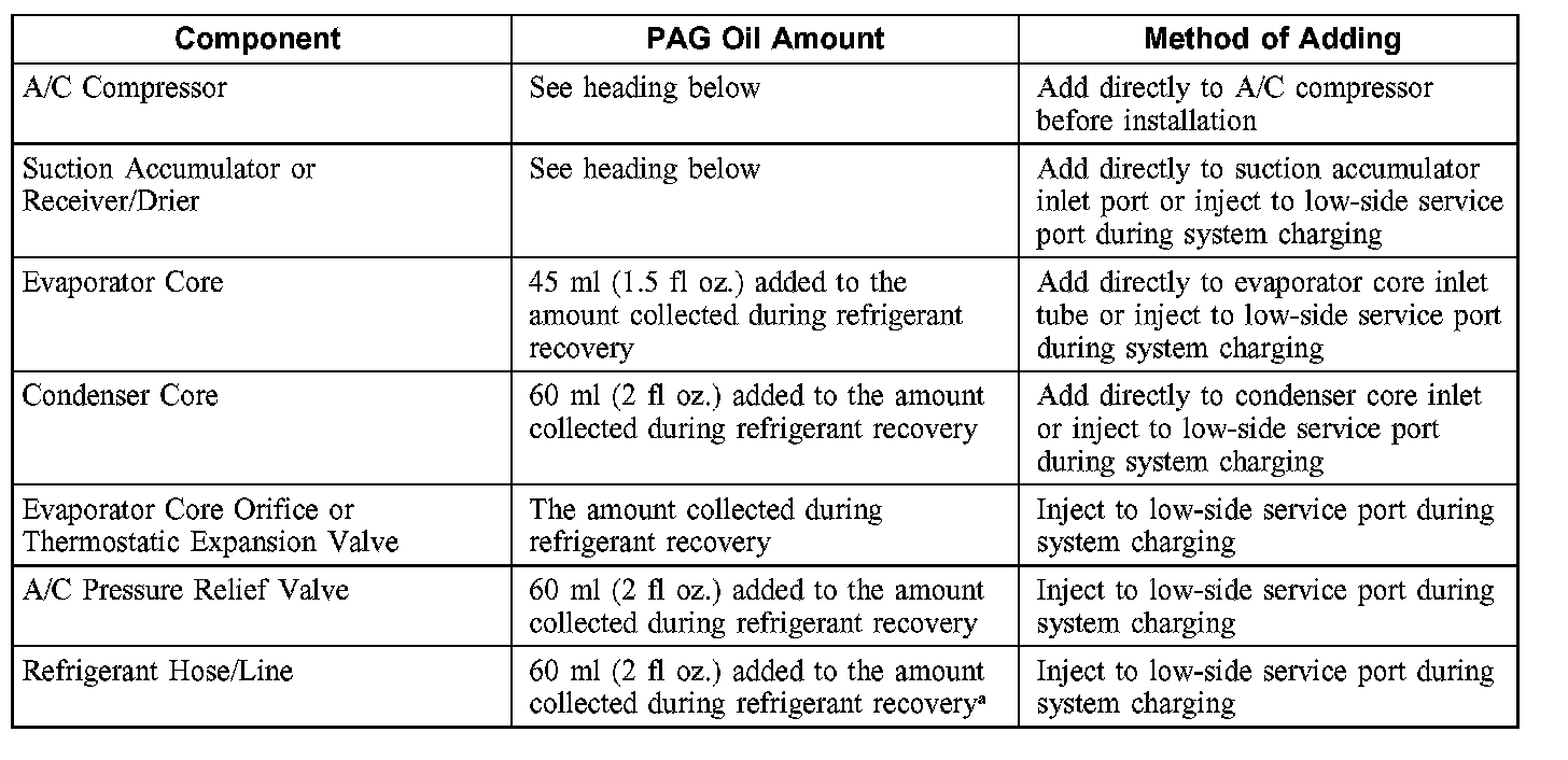 Refrigerant Oil Adding for New Suction Accumulator or Receiver/Drier Installation