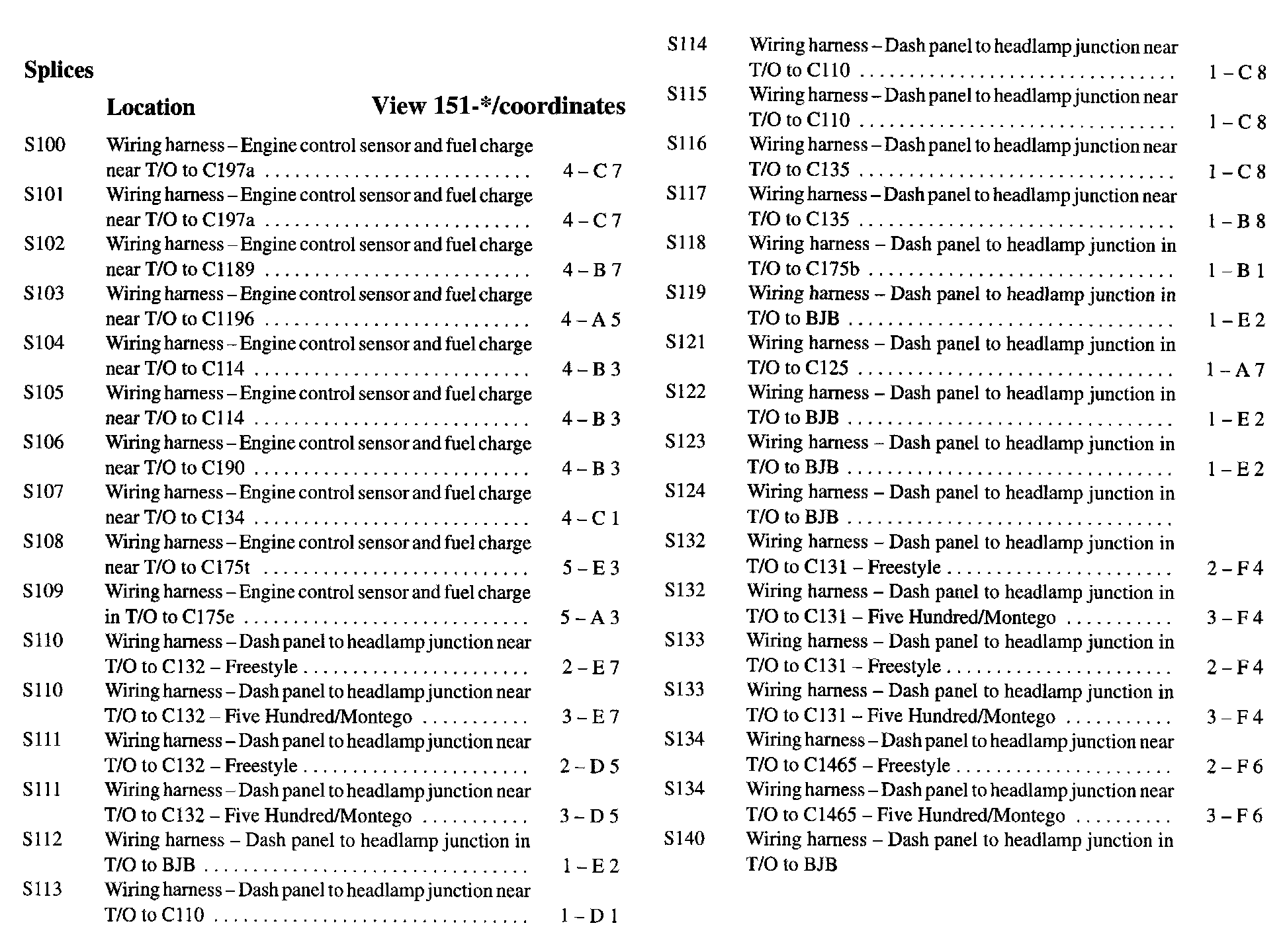 If a link on the Splices Location Index to a View is not provided, that means that the Splices and/or View in question does NOT apply to the vehicle model selected.