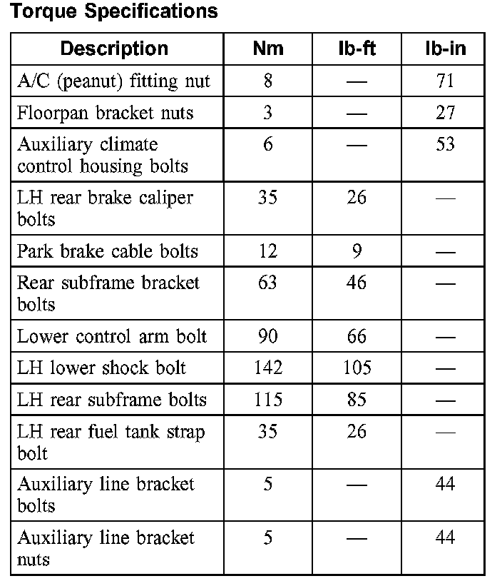Torque Specifications: