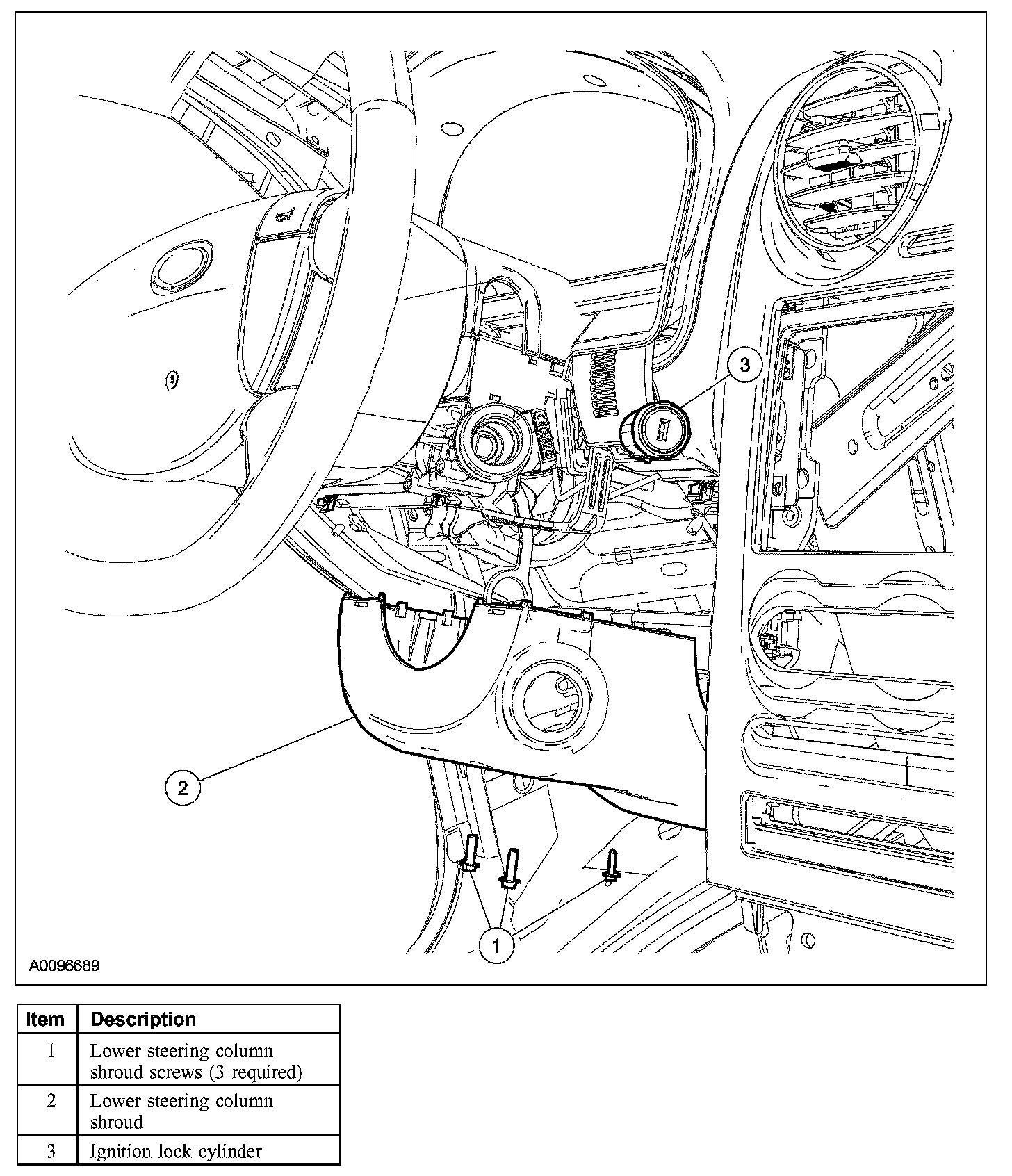 3. Remove the 3 lower steering column shroud screws.