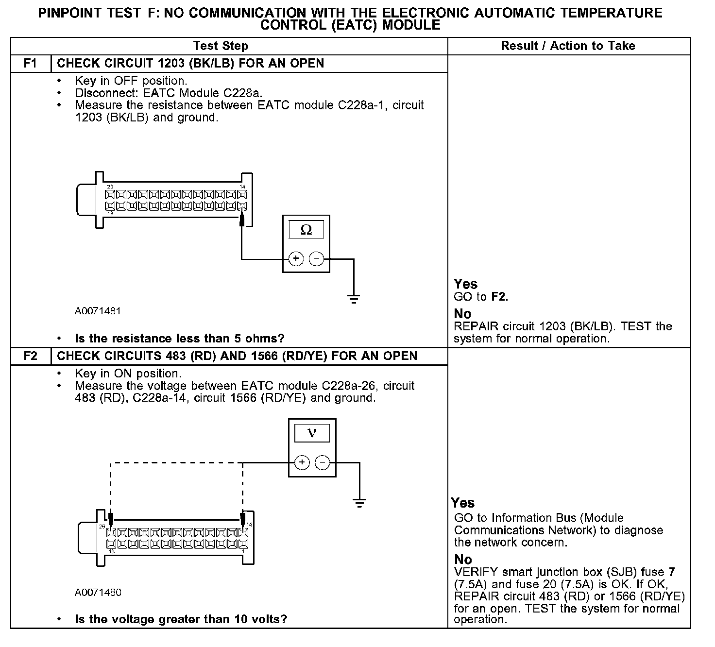 PINPOINT TEST F: NO COMMUNICATION WITH THE ELECTRONIC AUTOMATIC TEMPERATURE CONTROL (EATC) MODULEF1-F2: