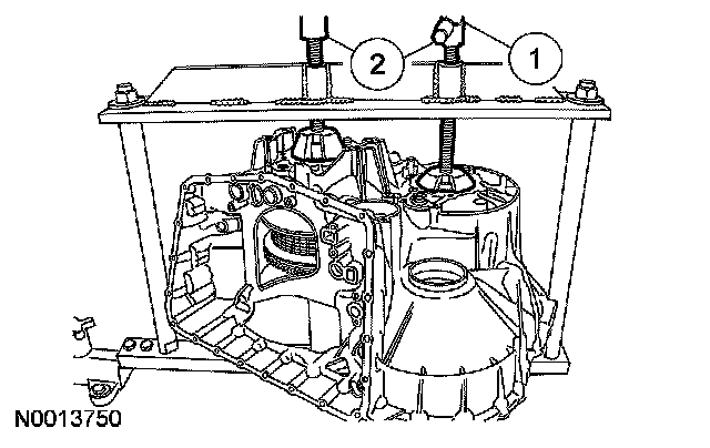 1 Hold the transaxle case level. Turn the secondary forcing screw 2 complete turns.