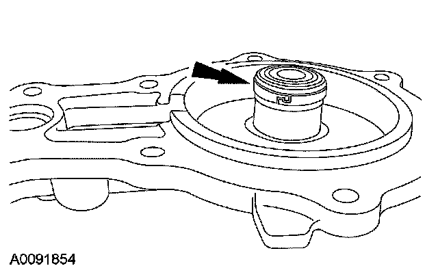^ If the final measurement (D) is not within specification, install a new selective snap ring (either thicker or thinner) until the clearance specification is achieved.