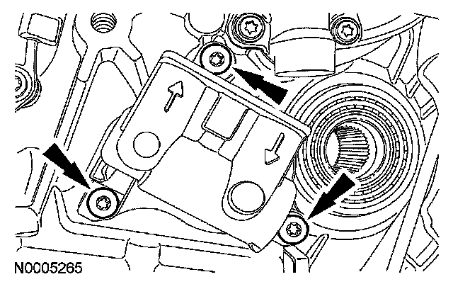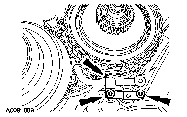 30. Make sure when routing the range selector valve assembly wiring harness that it is between the bolt holes and is pressed into the case retainers.