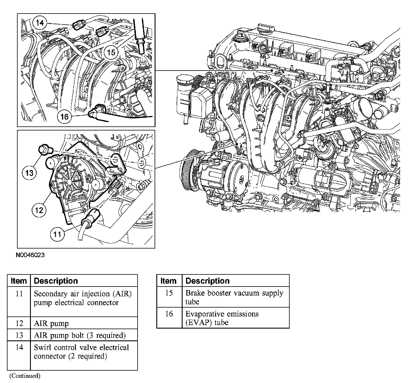 5. Depress the locking ring and disconnect the brake booster vacuum supply tube from the intake manifold.