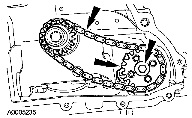 Install the crankshaft sprocket, crankshaft sprocket diamond washers, oil pump chain and oil pump sprocket.