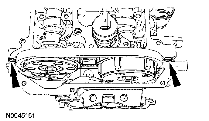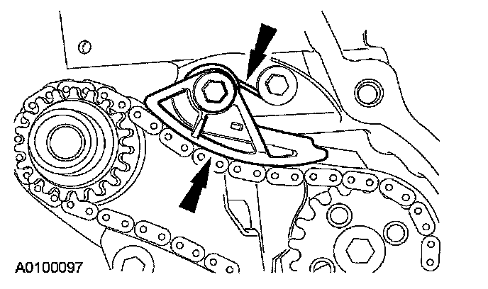 Install the special tool in the slots on the rear of both camshafts.