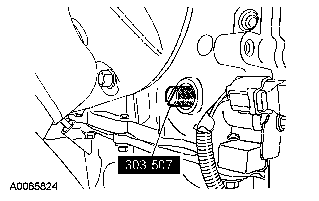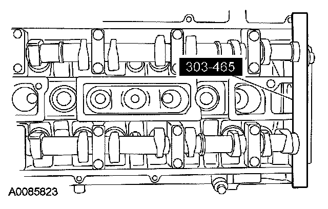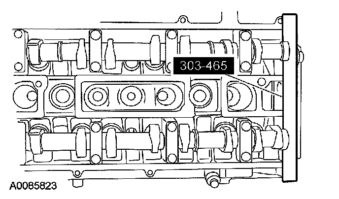 62. CAUTION: The special tool 303-465 is for camshaft alignment only. Using this tool to prevent engine rotation can result in engine damage.