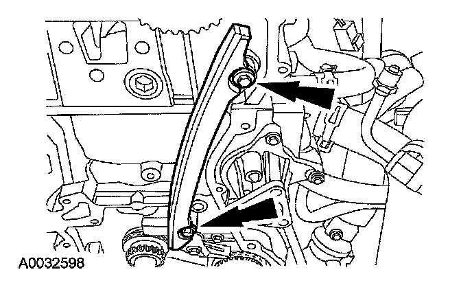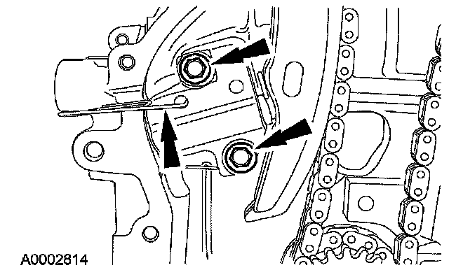 54. Install the LH timing chain guide and the bolts.