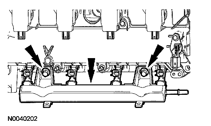 ^ Separate the fuel injectors from the fuel rail.