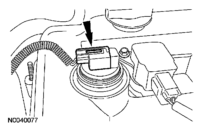 122. Attach the wiring harness retainer to the valve cover stud.