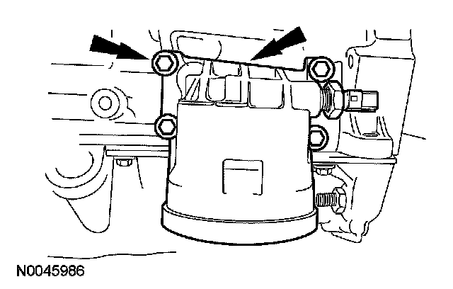 98. Install a new gasket, the oil filter adapter and the 4 bolts.