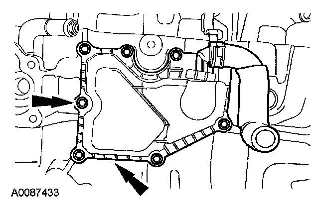101. Position the bypass hose on the engine and connect the bypass hose to the coolant outlet.