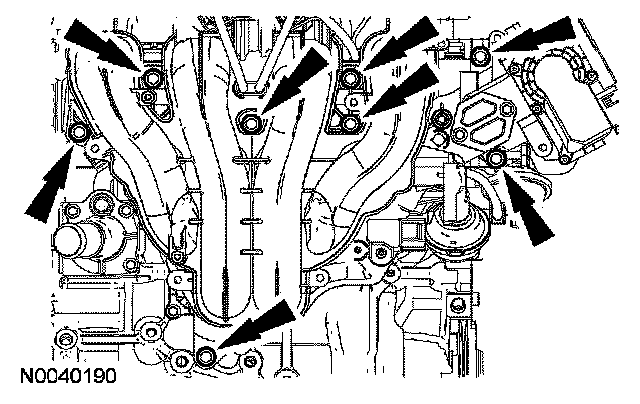 118. Install 7 new catalytic converter studs in the cylinder head.