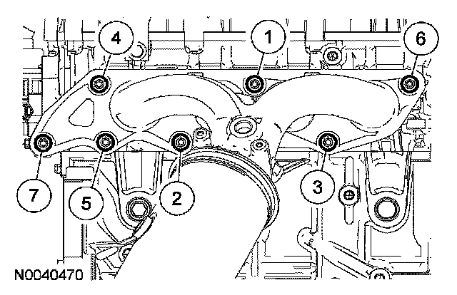 Install a new gasket, the catalytic converter and 7 new nuts. Tighten the nuts in 2 stages in the sequence shown.