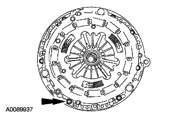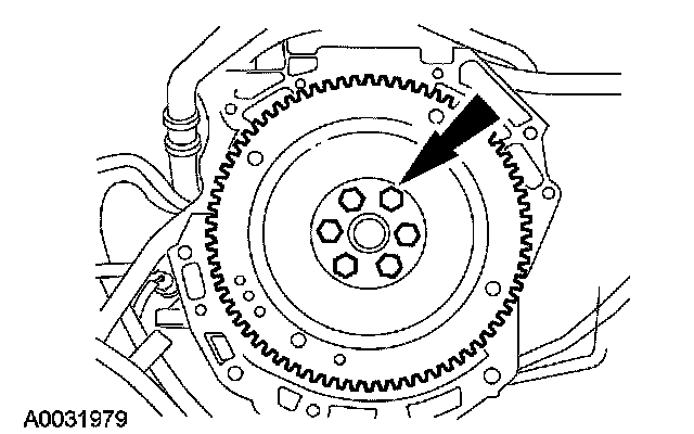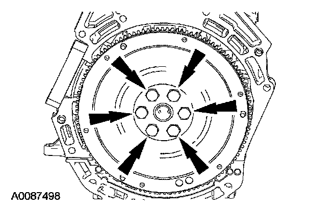 CAUTION: Loosen the 6 bolts evenly to prevent pressure plate damage.