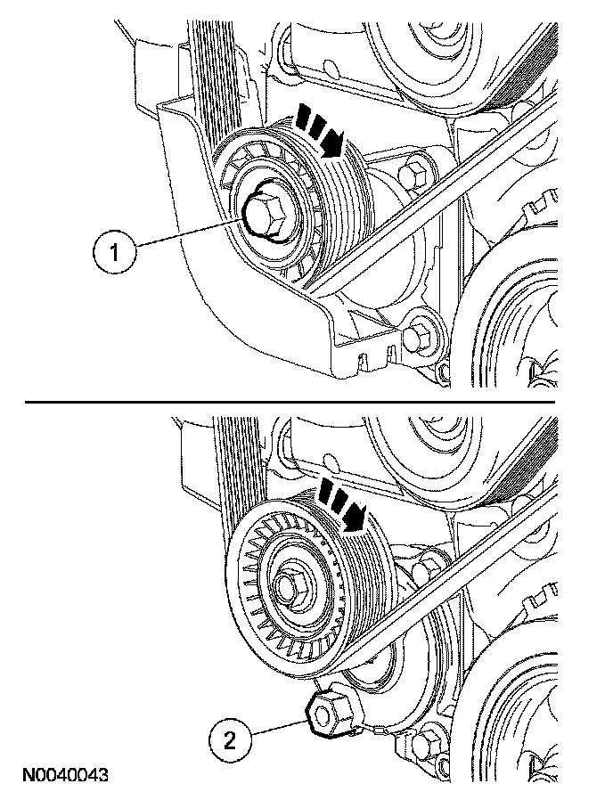 1 On early build engines, use the pulley bolt to rotate the tensioner.