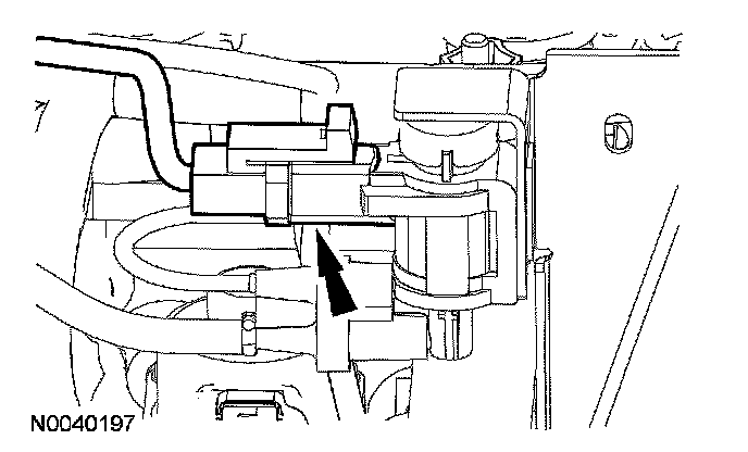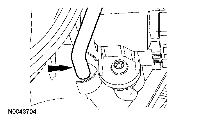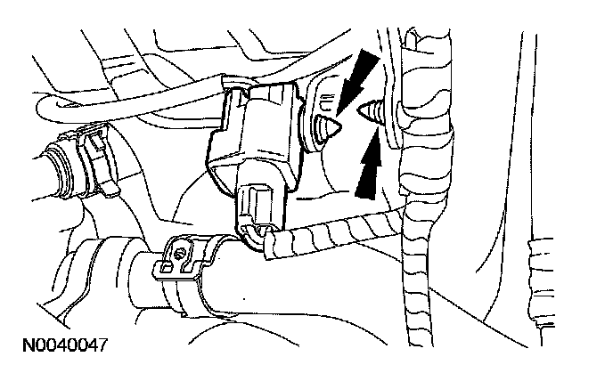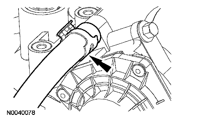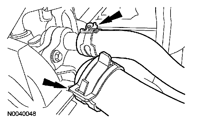 ^ Detach the radiator hose retainer clip from the intake manifold.