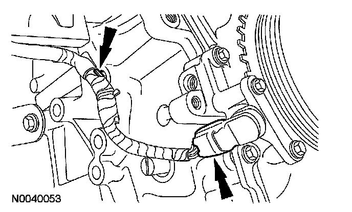 22. Disconnect the crankshaft position (CKP) sensor electrical connector and harness pin-type retainer.