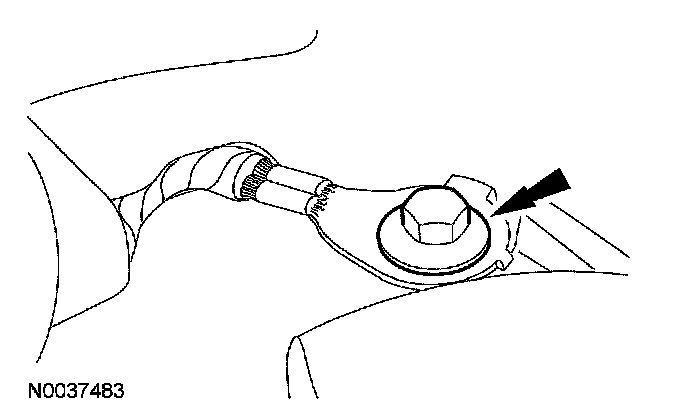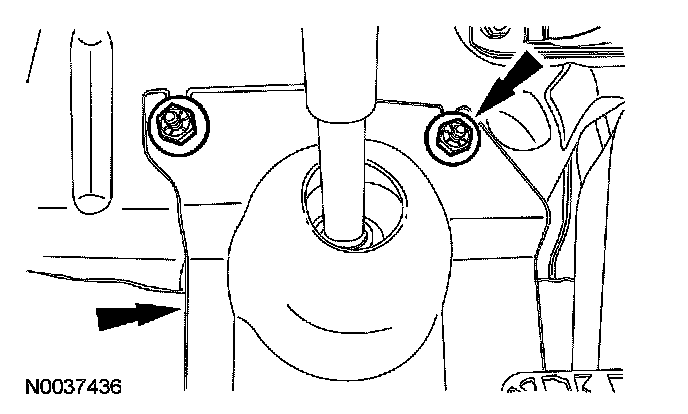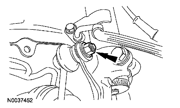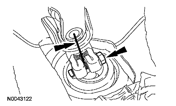 22. CAUTION: When the lower ball joint is separated from the wheel knuckle, the lower arm may strike the outer constant velocity (CY) joint boot with enough force to damage the boot clamp. This will result in a loss of grease from the outer CV joint. Place a block of wood, or similar item, between the lower arm and the outer CV joint to prevent the lower arm from striking the outer CV joint.