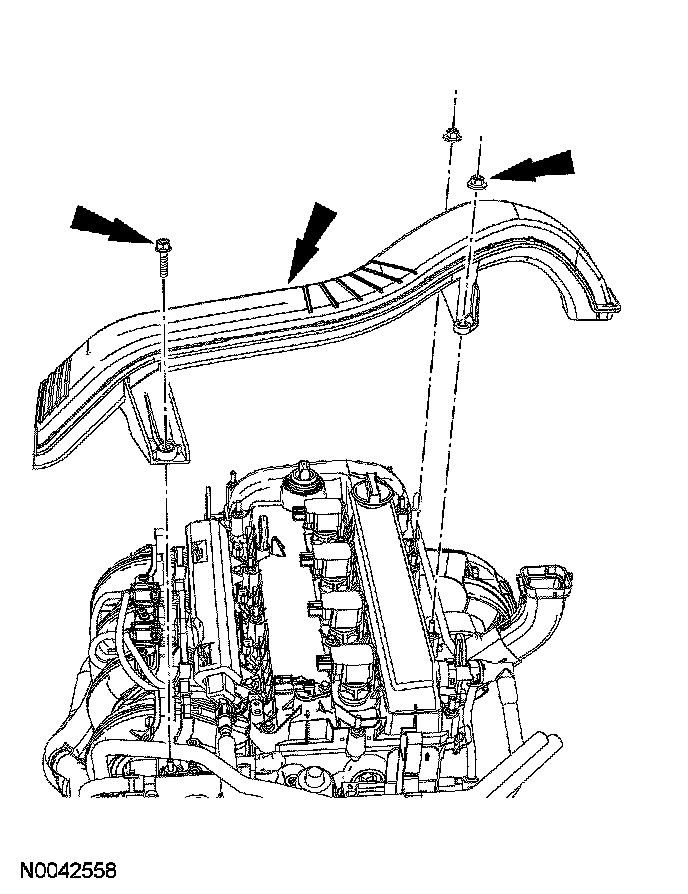 32. Remove the engine air cleaner and air cleaner outlet pipe. For additional information, refer to Fuel Delivery and Air Induction.