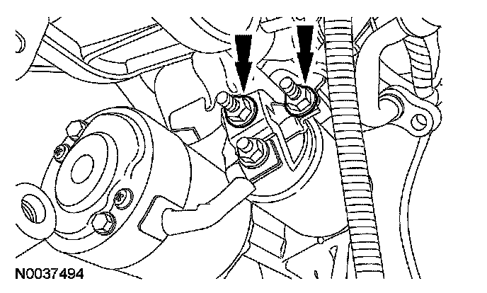 68. Detach the 2 wiring harness retainers from the starter stud bolts.
