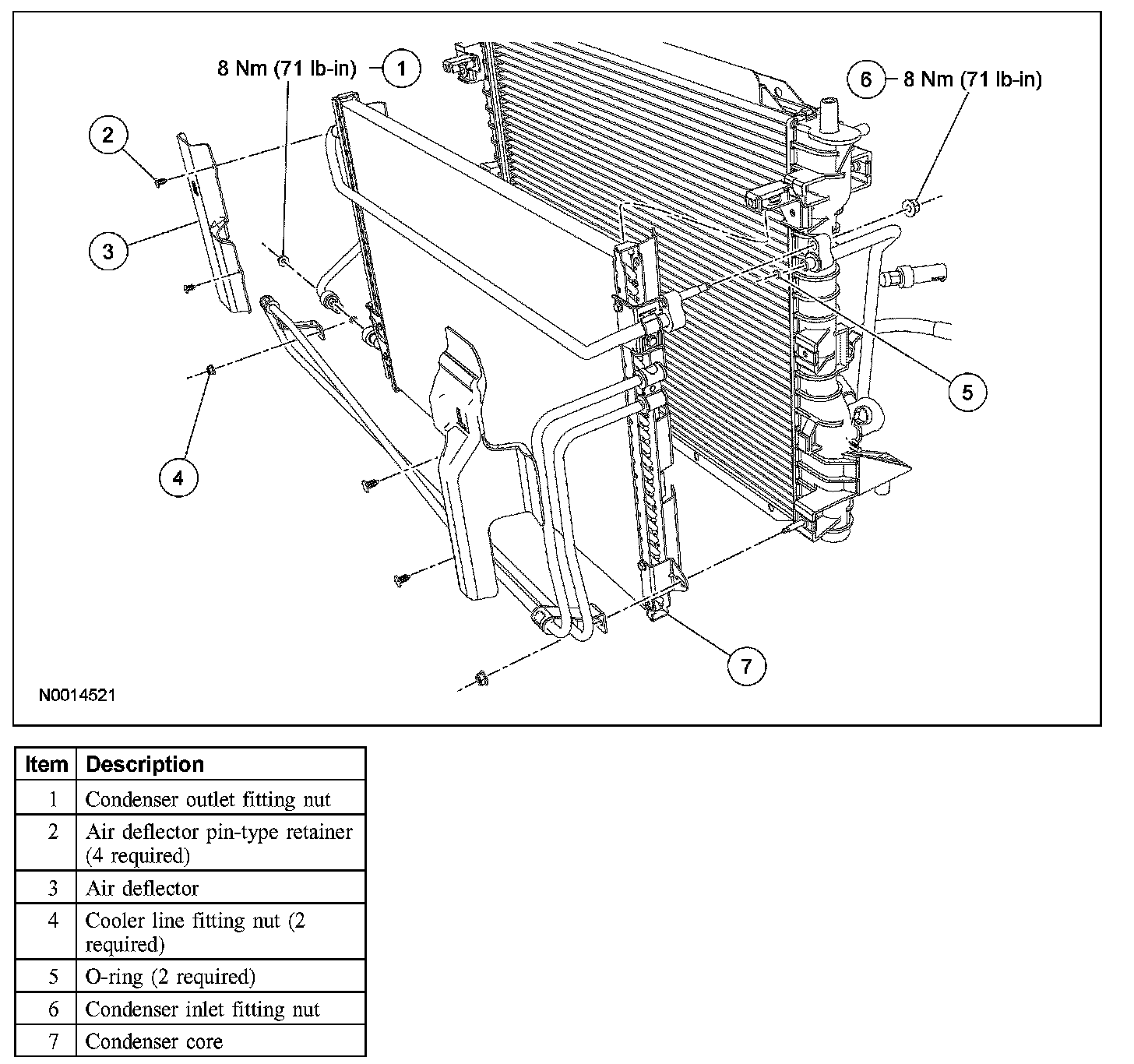 5. Remove the condenser outlet fitting nut and disconnect the fitting.