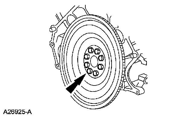 Remove the 6 bolts and the flexplate or flywheel.
