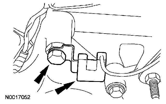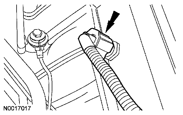 ^ Detach the engine wiring harness retainer from the stud bolt.