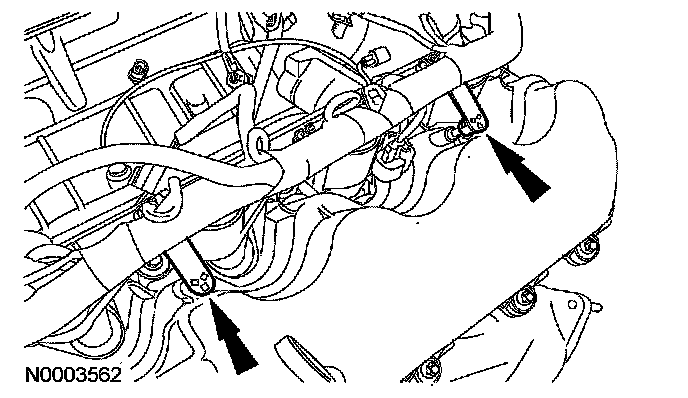 13. Disconnect the 2 engine wiring harness retainers from the RH valve cover studs.
