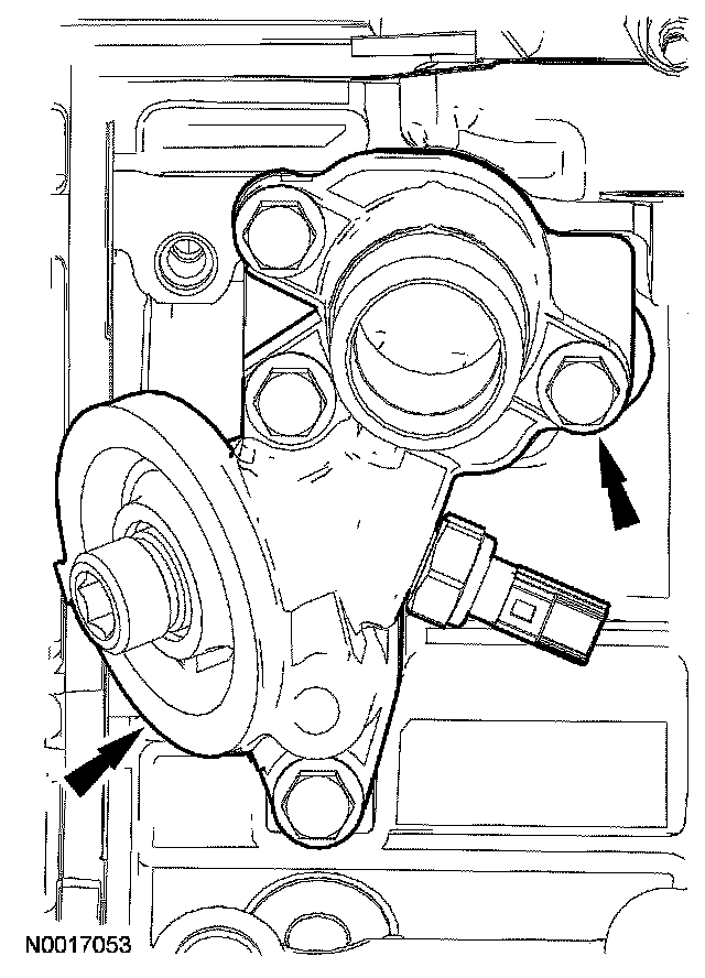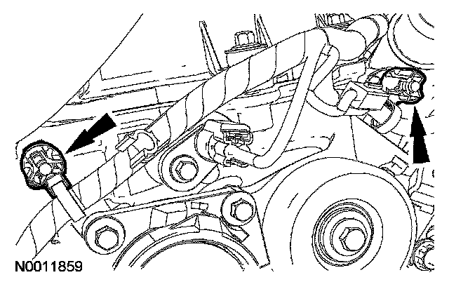 Disconnect the RH and LH variable camshaft timing (VCT) solenoid electrical connectors.