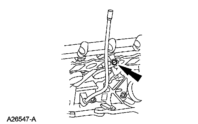 24. Remove the bolt and the oil level indicator tube.