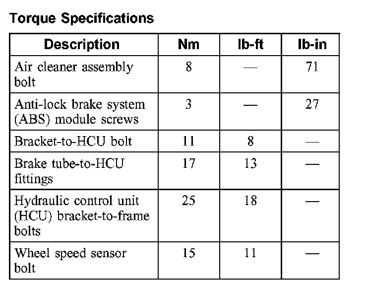 Torque Specifications: