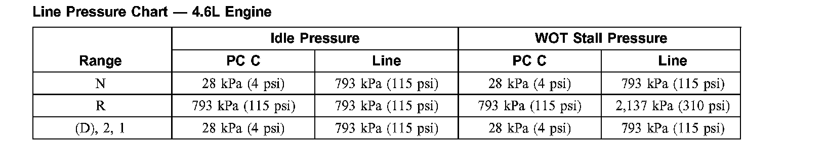 Line Pressure Chart - 4.6L Engine: