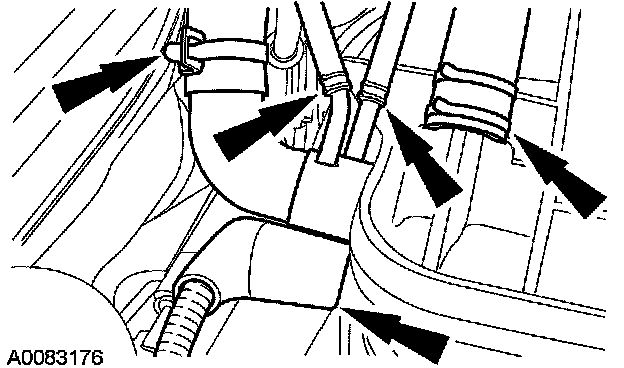 11. Connect the engine vacuum harness, brake booster hose, the crankcase breather hose and coolant hoses.