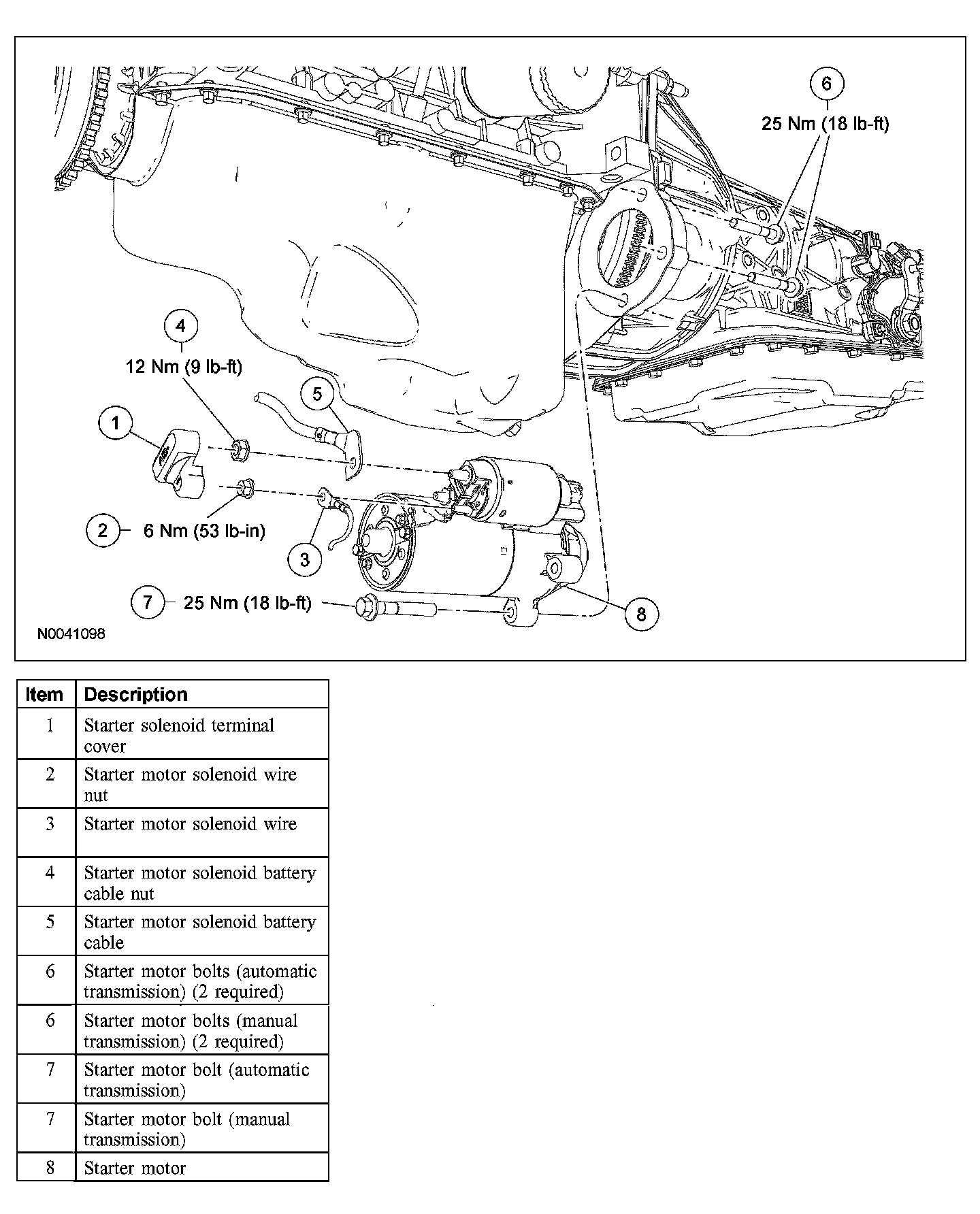 - To install, tighten the solenoid battery cable nut to 12 Nm (9 lb-ft).
