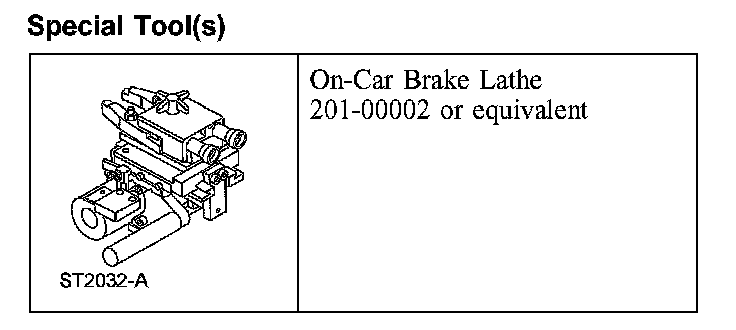 NOTE: Lateral runout and disc thickness variation measurements are not required because correct adjustment of the on-vehicle brake lathe will make sure that these dimensions are within specifications.