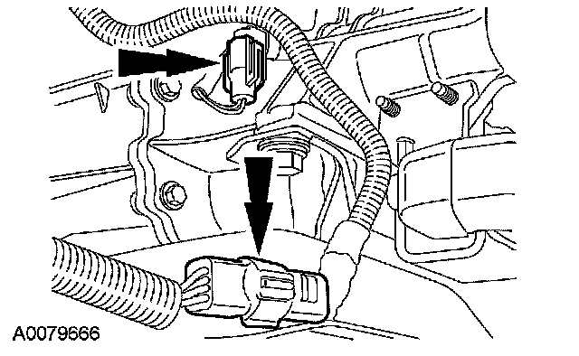 16. Connect the transmission backup light switch electrical connector and install the pin-type retainers.