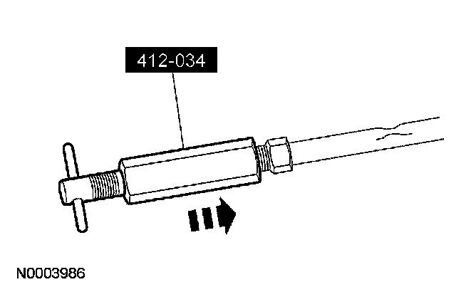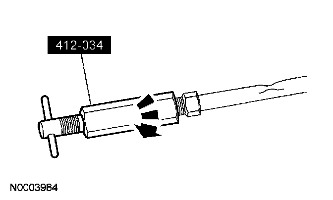 4. If the evaporator core orifice is intact, engage the special tool. Hold the T-handle stationary while rotating the tool body to remove the evaporator core orifice.