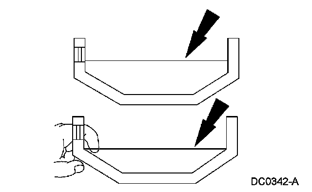 ^ The fluid must be just below the fill plug hole. Because you can reach the fluid with a finger does not mean the fluid is at the correct level. Make sure the fluid is level with the filler opening for the correct fluid level.