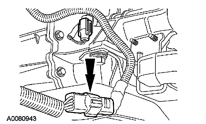 10. Detach the transmission electrical connector from the crossmember.