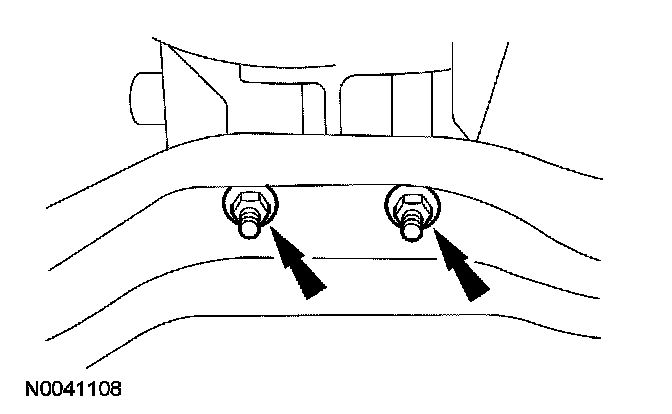 7. Remove the bolts retaining the exhaust inlet crossover pipe to the muffler. Discard the exhaust converter outlet gasket.