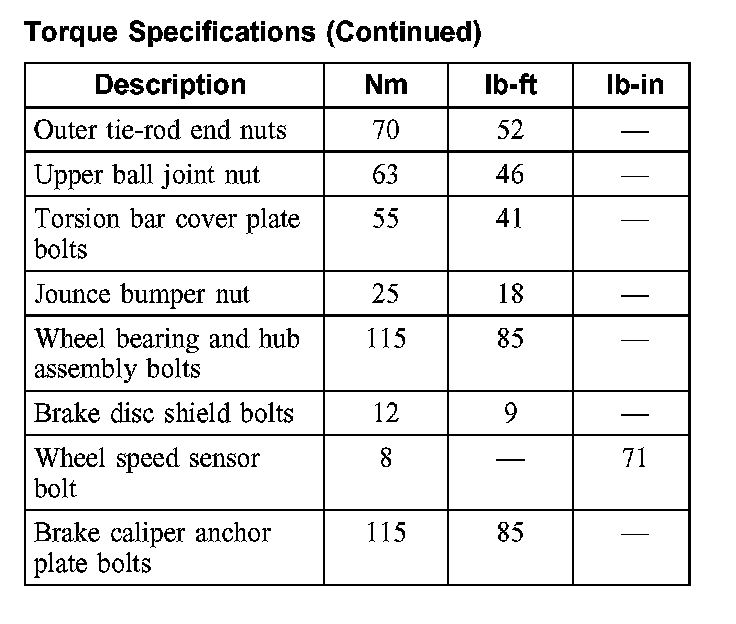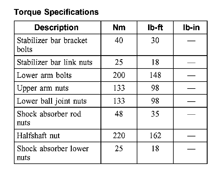 Torque Specifications: