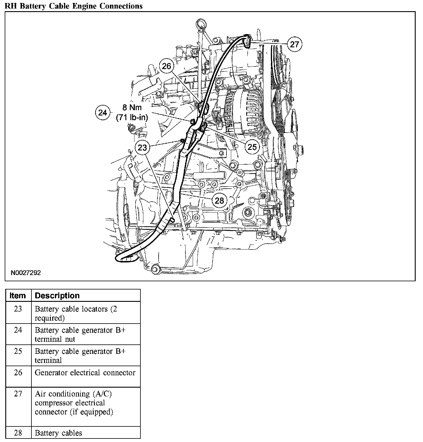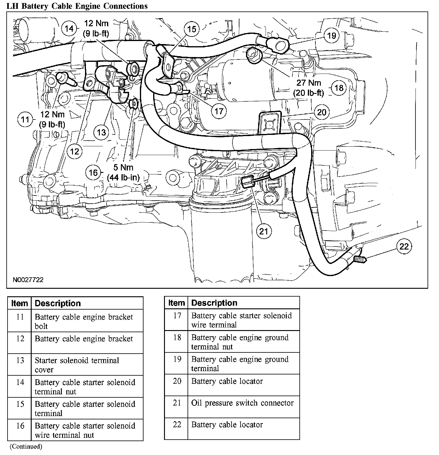 13. Remove the nut and position the battery cable engine ground terminal aside.
