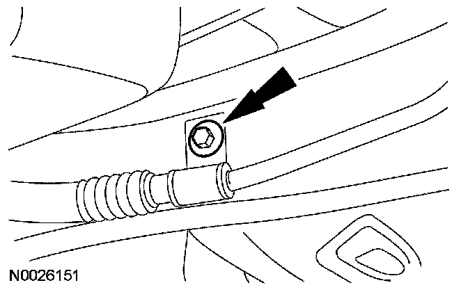 15. Remove the 4 bolts holding the power steering line to the subframe.