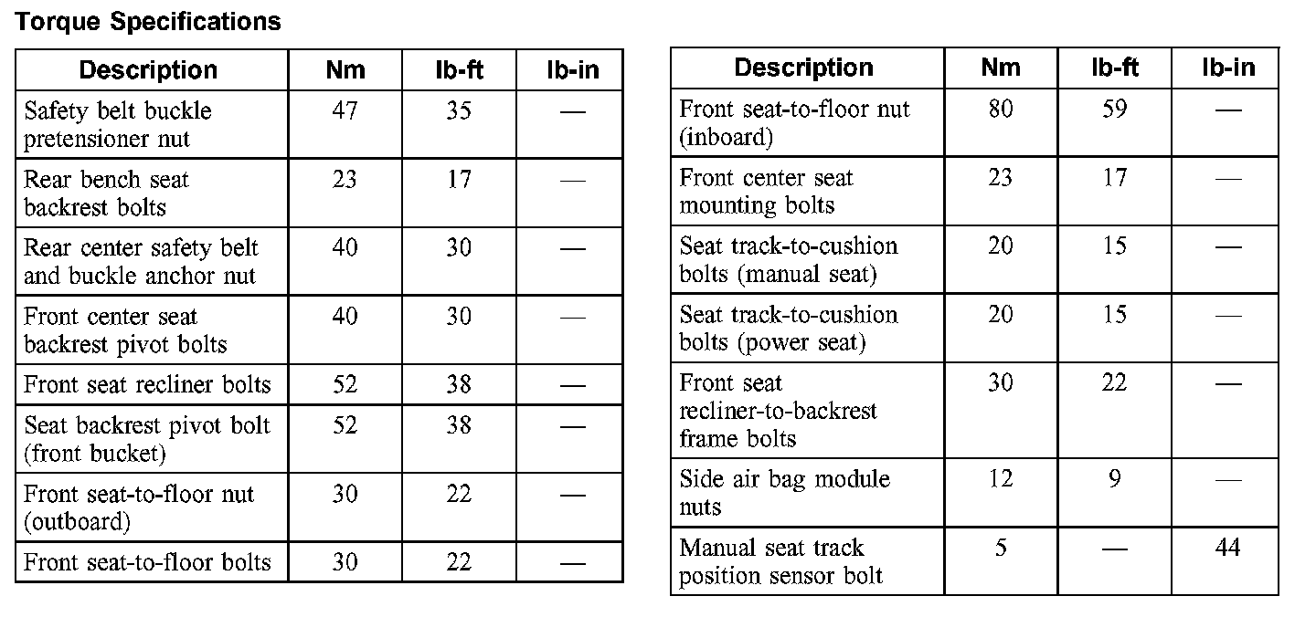 Torque Specifications:
