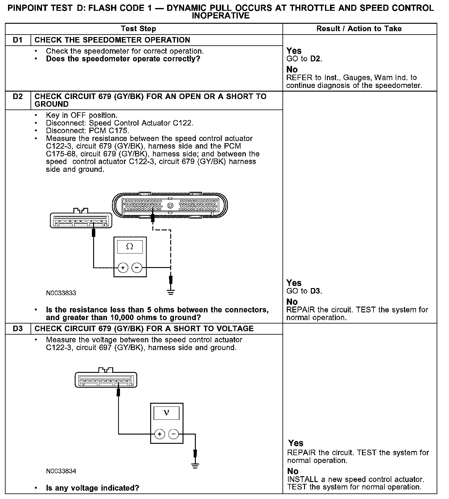 Test D: Flash Code 1 - Dynamic Pull Occurs At Throttle And Speed Control Inoperative